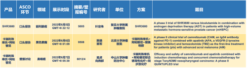 卡瑞利珠单抗联合EVO医药的另一款创新药法米替尼在甲状腺癌和结直肠癌领域有2项研究被接收为壁报,另有卡瑞利珠单抗联合化疗的4项研究在肺癌、结直肠癌、头颈癌和阴茎癌领域的研究被接收为5份壁报。